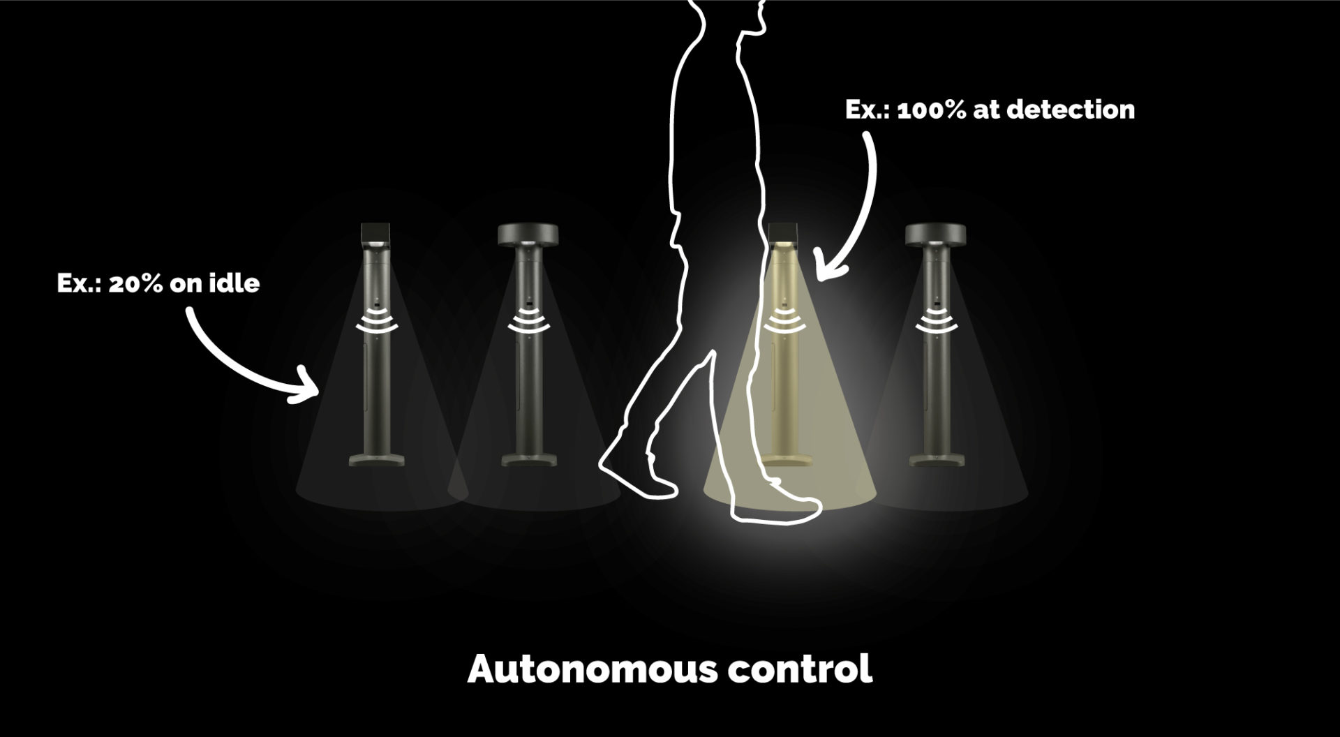 - Autonomous control: Bollard individually light up when detection occurs.
